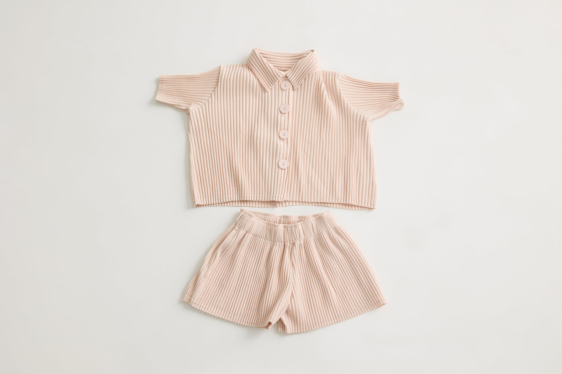 Rêverit's Premium Made Kids Pleated Polo Set – Salmon Pink and black.