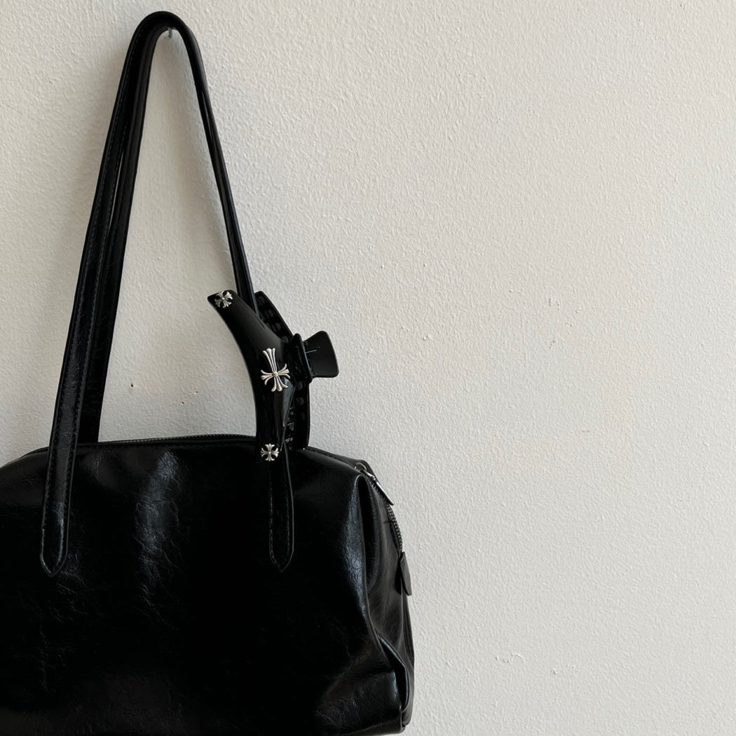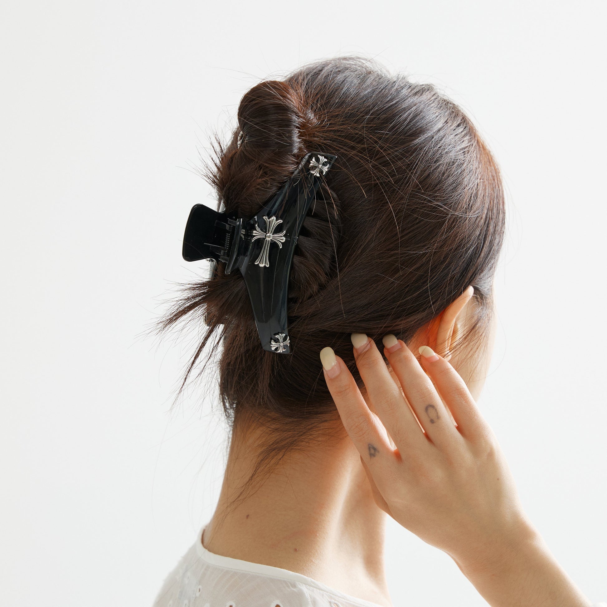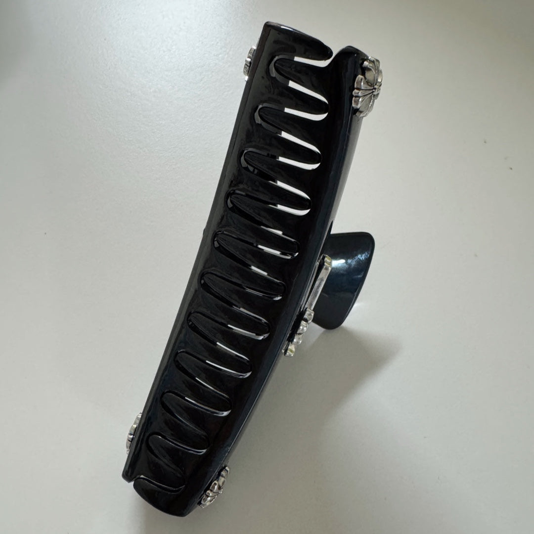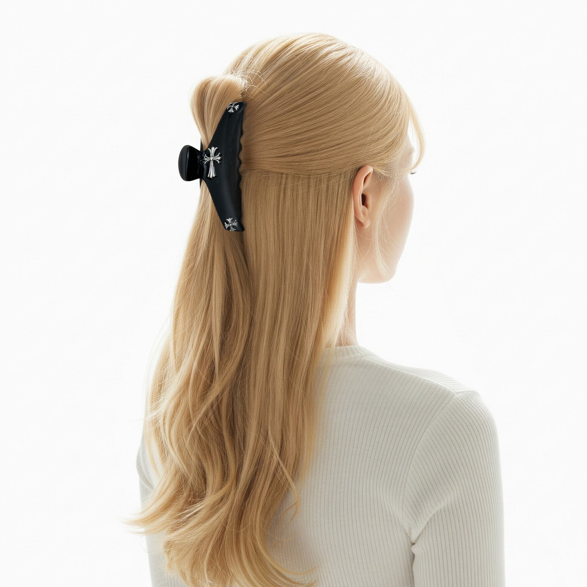 Edgy Black Claw Clip with Silver Cross Motifs – Gothic Hair Accessory (Black)