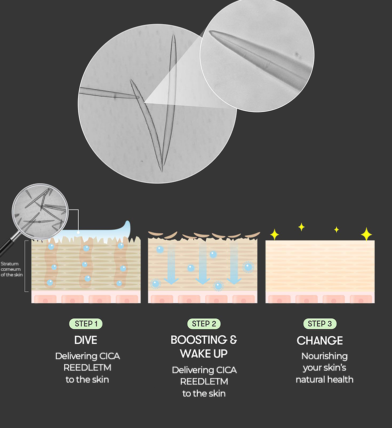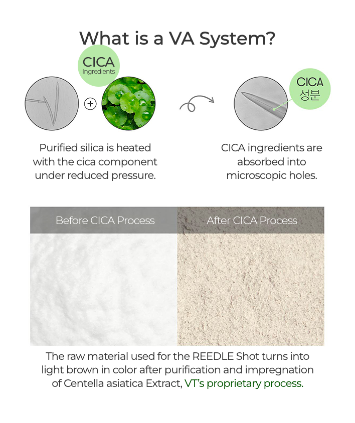 - Absorbs Quickly Into the Skin: CICA REEDLE is made of silica, a natural mineral. It gently stimulates the skin to promote the absorption of active ingredients in VT skincare products. ※The tingling sensation is a natural phenomenon that occurs as the product absorbs into the skin and supplies nutrients.