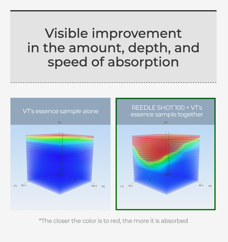 - Daily Skin Care Without Burden: Moist and quickly absorbed, REEDLE SHOT effectively delivers active ingredients to improve skin texture. The optimal mixing ratio is applied, so it is not burdensome to use daily. REEDLE SHOT 100 is the only product in VT's Riddle shot line that can gradually increase the frequency of use. Wake up your sleeping skin with daily facial massages.